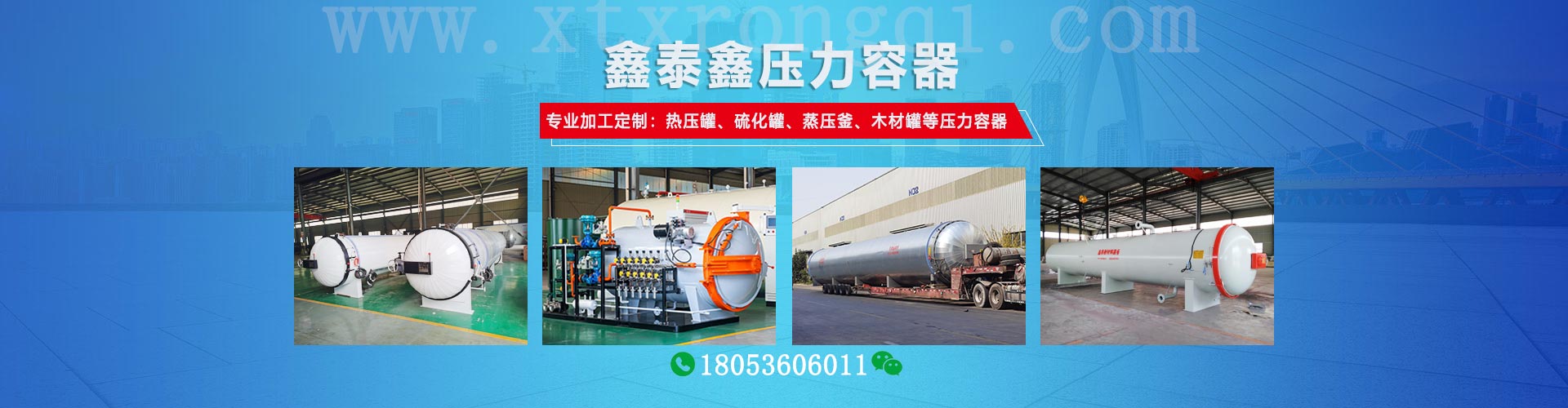 您好,歡迎來(lái)到山東鑫泰鑫智能裝備有限公司網(wǎng)站!我們?yōu)槟峁└鞣N規(guī)格的硫化罐、熱壓罐、蒸壓釜、木材罐等壓力容器設(shè)備及服務(wù)。